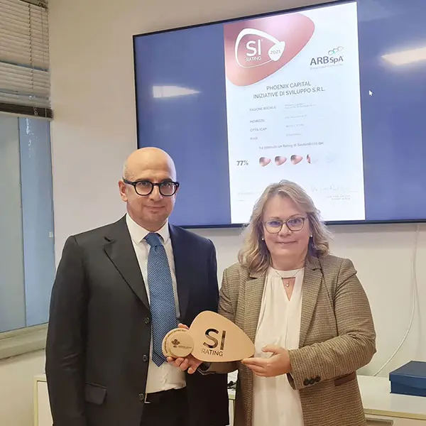 In linea con i nostri obiettivi di sviluppo sostenibile e responsabilità sociale d’impresa, negli ultimi anni Phoenix Capital ha adottato il Sustainability Impact Rating (SI Rating®) di ARB Spa, start-up innovativa specializzata nella sostenibilità integrata. Dopo il primo rating SI”Bronze” nel 2021, nel 2023 l’attestazione di sostenibilità è stata promossa al SI Silver Rating® con punteggio 81/100.